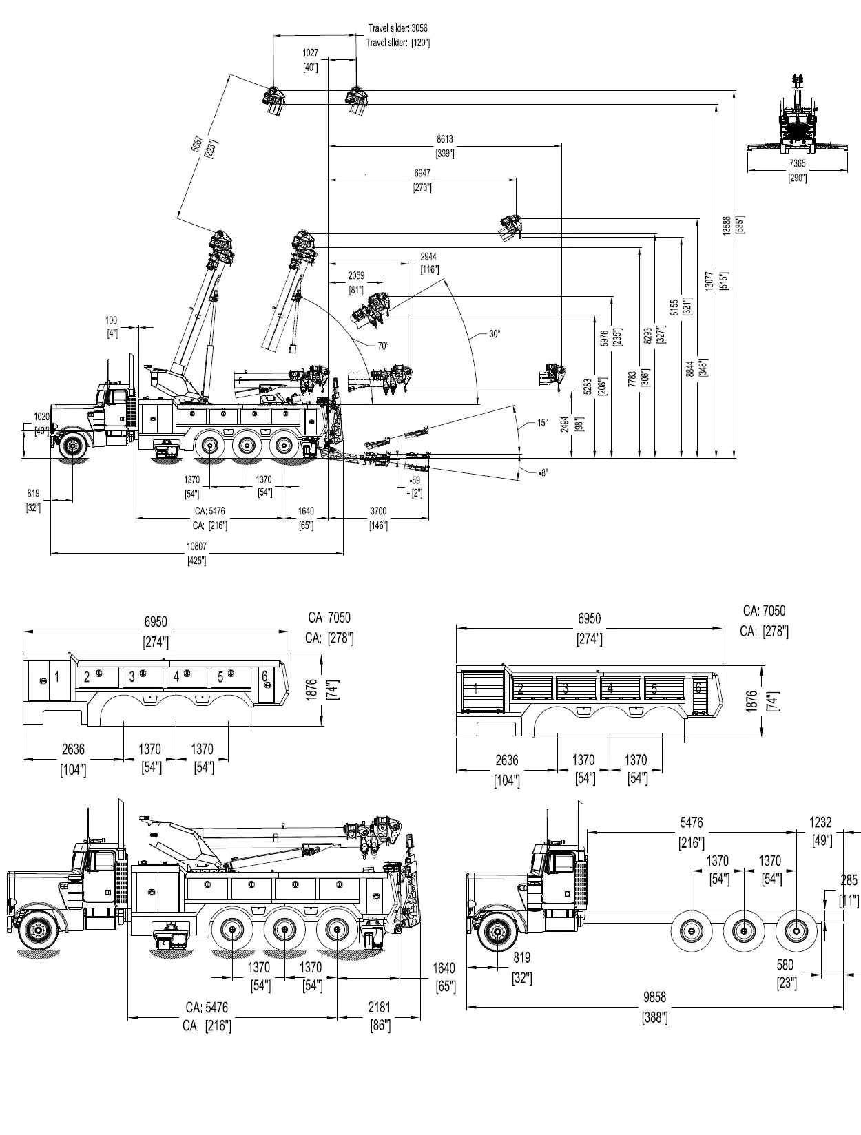 All ratings are based on structural and design factors only. Vehicle chassis capacity and capabilities can vary significantly, affecting the overall performance and rating of the unit. All chassis specifications are minimums, heavier specifications may be required depending on chassis and equipment weights. Please contact your nearest distributor for additional information.